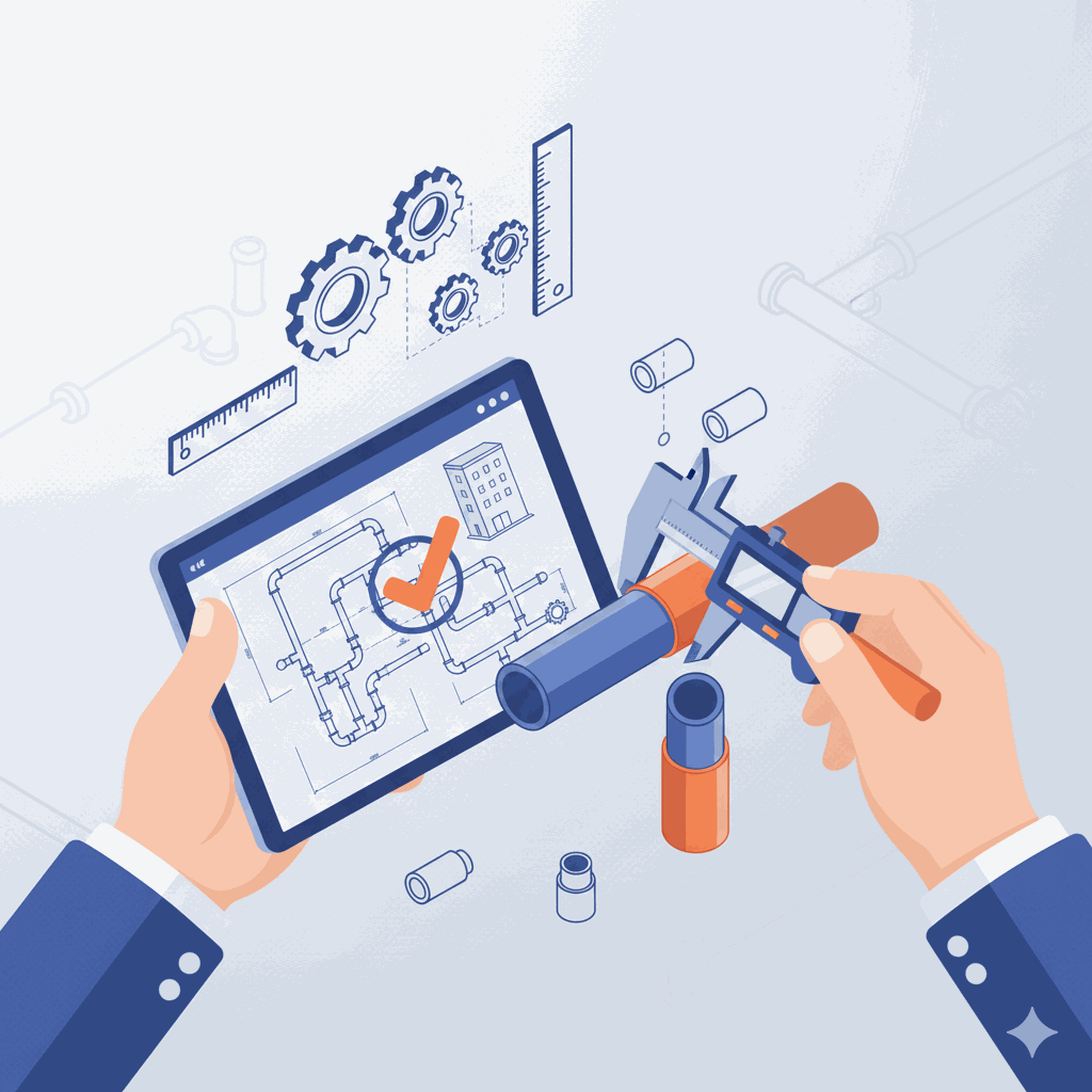 متره و برآورد دقیق لولهکشی ساختمان شما اعم از بست و ساپورت، لولههای فاضلابی سوپردرین، لولهکشی سوپرپایپ، سیستم گرمایش کفی، پمپ ویتو در کمترین زمان ممکن با نرمافزار بهروز سوپرپایپ کد و تحت نظارت تیم مهندسی و بدون هیچگونه هزینه انجام خواهد شد.