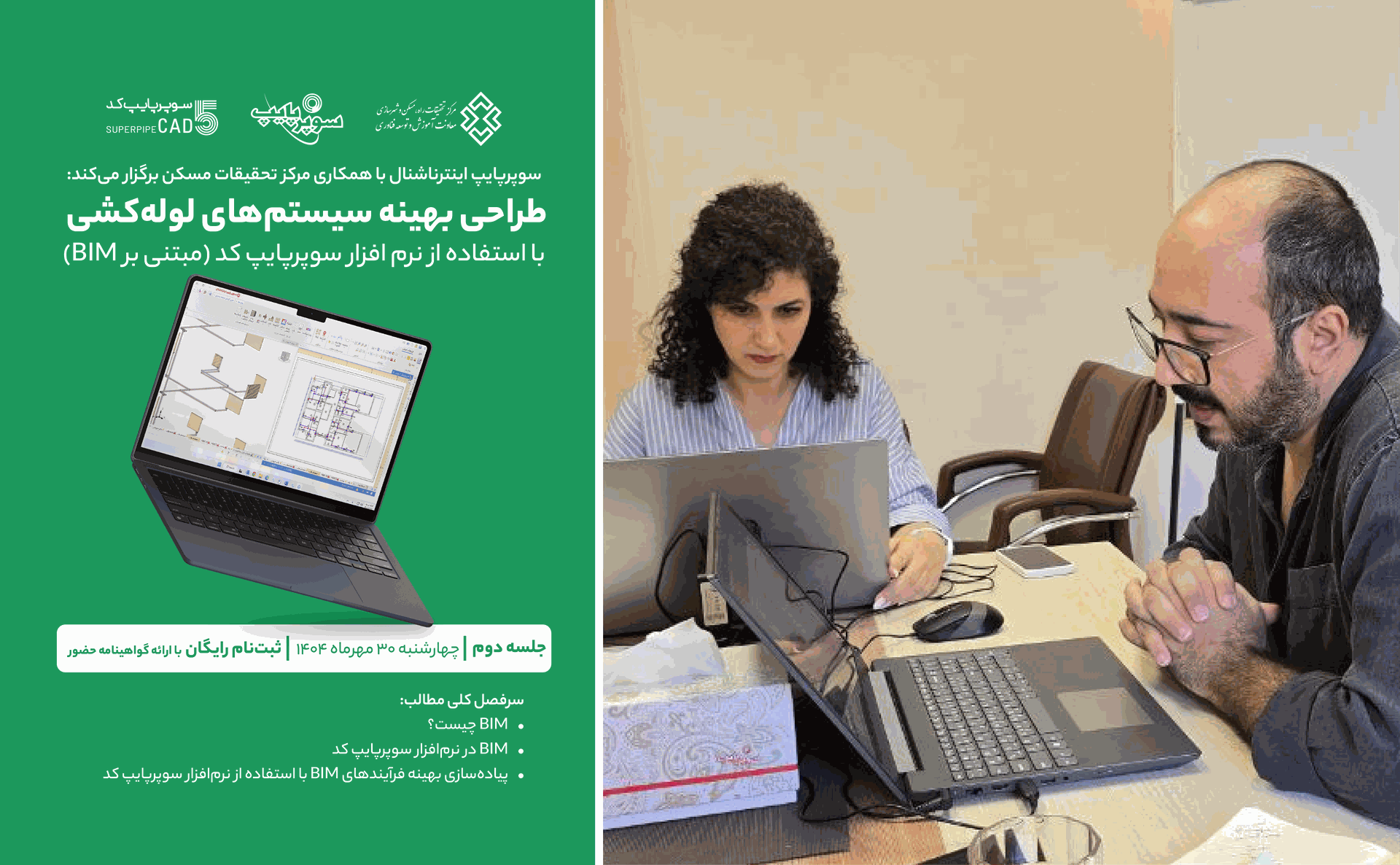 مرکز تحقیقات راه، مسکن و شهرسازی با همکاری شرکت سوپرپایپ اینترناشنال، دومین جلسه از وبینار تخصصی «طراحی بهینه سیستمهای لولهکشی با استفاده از نرمافزار سوپرپایپ کد۵» را با موفقیت برگزار کرد.